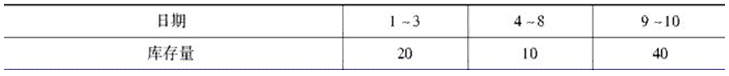 已知某种商品这个月上旬的库存量(单位:台)记录,如表1所示。则该商品上旬的平均日库存量为( )台。