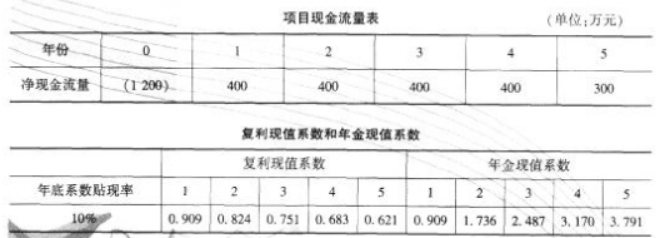 某公司正考虑建设一个新项目。根据市场调查和财务部门测算,项目周期为5年,项目现金流量已估算完毕,公司选择的贴现率为10%,具体数据参见下表项目现金流量表及现值系数表。