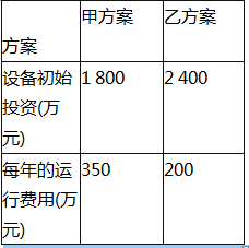 某建设项目的安装工程可以采用甲、乙两种方案。两种方案的设备初始投资费用和每年的运行费用见下表。