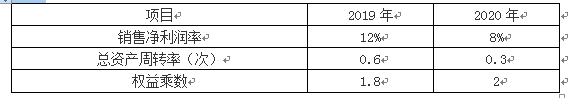 甲公司为一家上市公司,已公布的公司2020年财务报告显示,该公司2020年净资产收益率较2019年大幅降低,引起了市场各方的广泛关注。为此,某财务分析师详细搜集了甲公司2019年和2020年的有关财务指标,如下表所示。