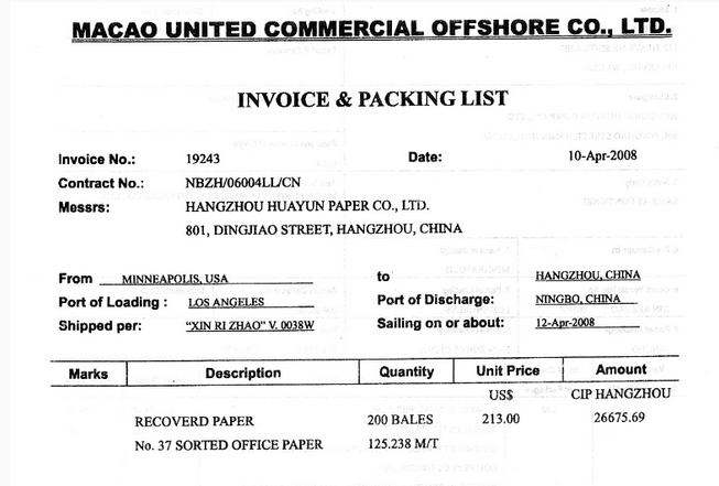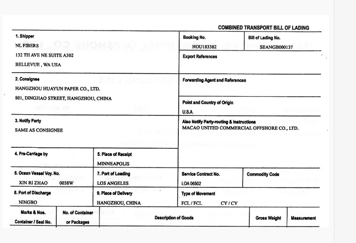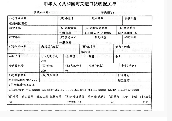 练习题(一) 杭州华云纸业有限公司(3301910221)从境外采购废纸(法定计量单位为千克)一批,拟加工成白卡纸后最终销往国内市场,货物进境后,华云公司自行向口岸海关办理报关手续。![]()