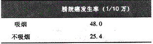 在某地区进行男性吸烟与膀胱癌关系的队列研究结果如下根据该资料,男性吸烟与膀胱癌关系的特异危险度为