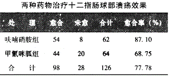 D某医生用国产呋喃硝胺治疗十二指肠球部溃疡,以甲氰咪胍作对照组,当比较两种方法治疗效果有无差别(两组性别