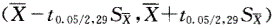 据大量调查知,健康成年男性身高的均数为170.0cm,某医生在某山区随机调查了30名健康成年男性,其身高均数为168.9cm,标准差为9.7cm。 欲估计该山区健康成年男性身高均数的95%置信区间,计算公式为