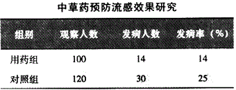 用某中草药预防流感,其用药组与对照组的流感发病率情况如下表,则构成四格的四个基本数据是