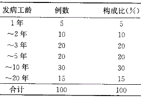 某石英粉厂100例矽肺的发病工龄分布如表所示: