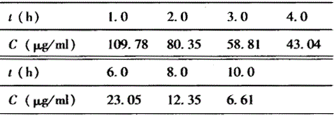 给某患者静脉注射一单室模型药物,剂量1050mg,测得不同时刻血药浓度数据如下: