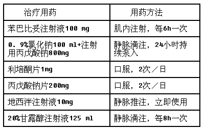 患者男性,55岁,以"胡言乱语,精神亢奋,突发肢体抽搐1天"之主诉入院。查体:神智清,双侧瞳孔等大。四肢肌力、肌张力可。病理征阴性。辅助检查:MRI示:左侧颞叶占位性病变。入院第二天(3月22日)于全麻下行开颅肿物切除术。术后生命体征平稳。3月28日停用静脉抗癫痫药,改用口服丙戊酸钠片,于当日晚8时出现癫痫持续状态。医嘱: