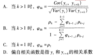 下列关于偏自相关函数φkk说法正确的是( )。![]()