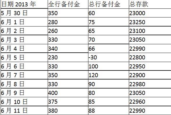 5月30日至6月11日A银行备付金情况参见表6—1。
