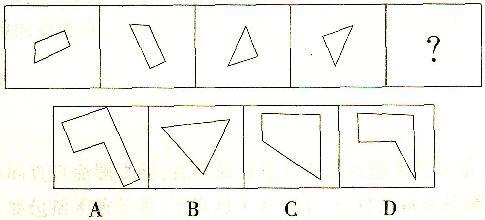 下题中缺少一个图.请从下边选项中选择一个插入上边图形中以使上边的图形逻辑角度上能成双配对。