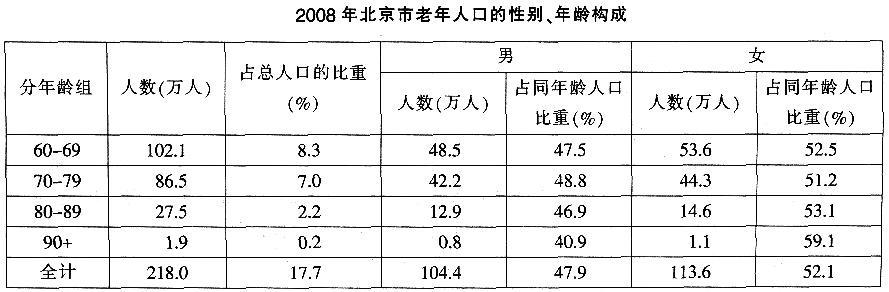 与2007年相比,2008年北京市60—69岁的老年人多了()。