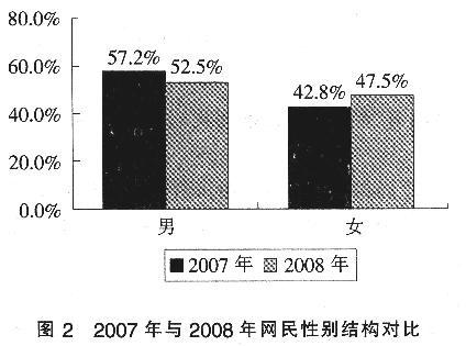 A与2007年相比.2008年中国网民性别结构进一步优化,趋近于总人口性别结构
