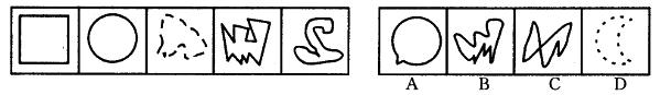 从所给的四个选项中,选择最合适的一个,使之符合左边五个图形的规律性: