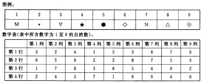 根据图例和数字表回答下列各题: 数字表中第3行前4列数字对应的符号是( )。