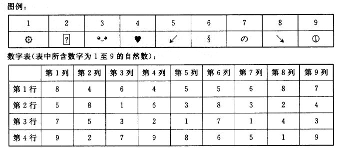 根据图例和数字表回答下列各题: 数字表中第7列四个数字对应的符号是( )。