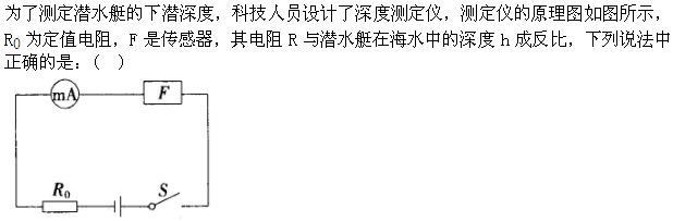 A电流表示数与潜水艇所在的深度成反比