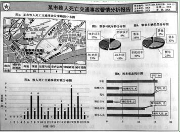 某市境内国道、公路、城际快速通道、运煤专线等交通干线纵横交叉,近期致人死亡交通事故频发。为深入剖析此类事故高发的原因,寻找有针对性的治理对策,市公安局汇总了2016—2017年该类警情数据,制作了如下的分析报告。该报告包括图1:某市致人死亡交通事故发案路段分布图;图2:致人死亡交通事故时段分布图;图3:肇事司机的年龄分布图;图4:肇事车辆类型分布图;图5:死者状态统计图。
