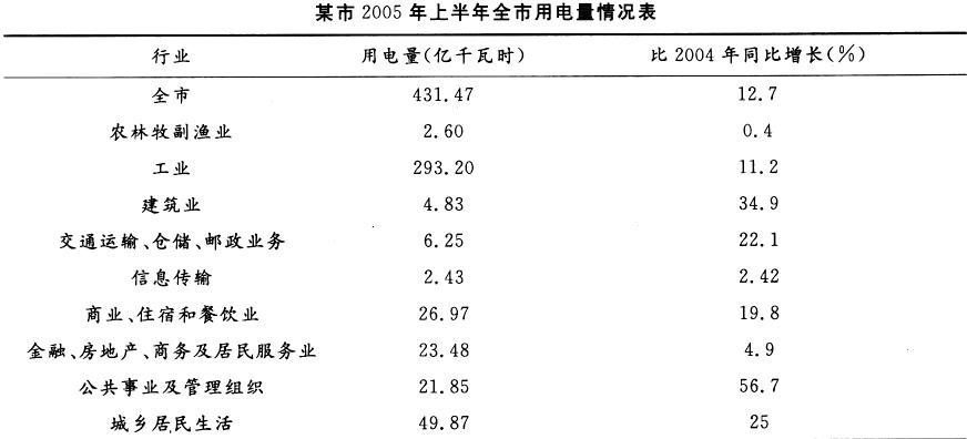 根据下面的统计图,回答问题2004年上半年,该市城乡居民生活用电比重为( )。