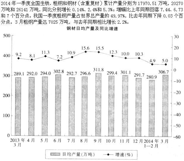 2014年一季度世界粗钢总产量是多少万吨?( )
