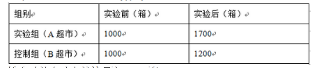 某糖果企业为了调查糖果更换包装的效果,选取A超市为实验组、B超市为控制组,进行控制组实验组对比实验,实验时间为一个月,实验前后的月销售量数据见下表:该实验的实验变数效果为( )箱。