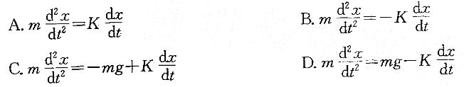 潜水艇在水中下沉时,其所受阻力与下沉速度成正比,若潜艇由静止状态开始下沉,则下列哪个方程是x(t)(路程是时间的函数)所满足的微分方程(其中K是比例系数,g为重力加速度)?![]()