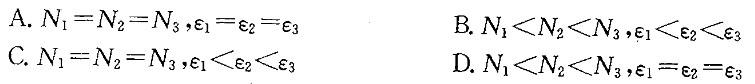 结构受力如图所示,各杆EA相同。若以N1、N2、N3和别表示杆①、 ②、③的轴力和纵向线应变,则下列结论中正确的是: