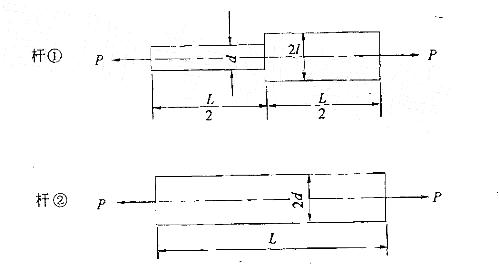 材料相同的两根杆件受力如图所示。若杆①的伸长量为,杆②的伸长量为
