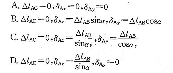结构受力如图所示。两杆的抗拉刚度EA相同。若节点A的水平位移为,节点A的竖直位移为