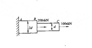 圆截面杆ABC轴向受力如图。已知BC杆的直径d=100mm,AB杆的直径为2d。杆的最大的拉应力是: