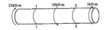 如图所示,直杆受扭转力偶作用,在截面1-1和2-2处的扭矩为: