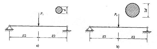 设图示两根圆截面梁的直径分别为d和2d,许可荷载分别为[P]1和[P]2,若二梁的材料相同,则[P]2/[P]1等于: