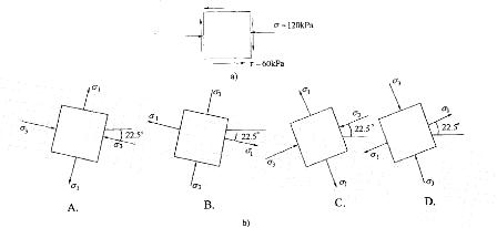 已知某点的应力状态如图a)所示,则该点的主应力方位应为图b)中哪一个图所示?