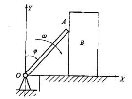 杠OA=l,绕定轴O以角速度ω转动,同时通过A端推动滑块B沿轴X运动,设分析运动的时间内杆与滑块并不脱离,则滑块的速度vB的大小用杆的转角φ与角速度ω表示为:
