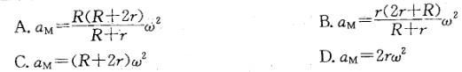 一半径为r的圆盘以匀角速ω在半径为R的圆形曲面上作纯滚动(如图所示), 则圆盘边缘上图示M点加速度aM的大小为:![]()