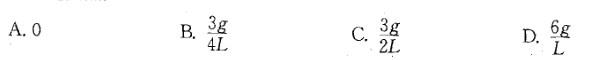 均质细杆重力为P、长2L,A端铰支,B端用绳系住,处于水平位置,如图所示。当B端绳突然剪断瞬时,AB杆的角加速度大小为:![]()
