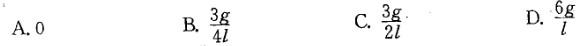 质量为m,长为2l的均质细杆初始位于水平位置,如图所示。A端脱落后,杆绕轴B转动,当杆转到铅垂位置时,AB杆角加速度的大小为:![]()