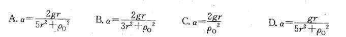 两重物的质量均为m,分别系在两软绳上。此两绳又分别绕在半径各为r与2r并固结在一起的两轮上。两圆轮构成之鼓轮的质量亦为m,对轴O的回转半径为ρO。两重物中一铅垂悬挂,一置于光滑平面上。当系统在左重物重力作用下运动时,鼓轮的角加速度α为:![]()