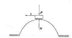 汽车重力P,以匀速v驶过拱桥,如图所示。在桥顶处,桥面中心线的曲率半径为R,在此处,桥面给汽车约束反力N的大小等于: