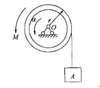 图示鼓轮半径r=3.65m,对转轴O的转动惯量JO= 0.92kg ? m2;绕在鼓轮上的绳端挂有质量m=30kg的物体A。不计系统质量与摩擦,欲使鼓轮以角加速度α=37.8rad/s2转动来提升重物,需对鼓轮作用的转矩M的大小是: