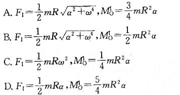 偏心轮为均质圆盘,其质量为m,半径为R,偏心距OC=R/2。若在图示位置时,轮绕O轴转动的角速度为ω,角加速度为α,则该轮的惯性力系向O点简化的主矢FI和主矩MIO的大小为:![]()