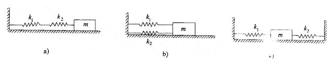 设图a)、b)、c)三个质量弹簧系统的固有频率分别为ω1、ω2、ω3,则它们之间的关系是:
