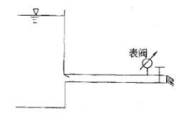 有压恒定流水管直径d=50mm,末端阀门关闭时压力表读数为21kPa,阀门打开后读值降至5.5kPa,如不计水头损失,则该管的通过流量Q为: