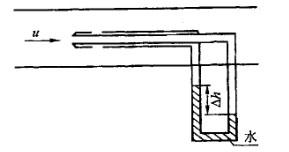如图所示,用一附有水压差计的毕托管测定某风道中空气流速。巳知压差计的读数Δh= 185mm,水的密度ρ=1000kg/m3,空气的密度ρa=1. 20kg/m3,测得的气流速度u约为: