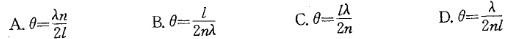 有一玻璃劈尖,置于空气中,劈尖角为θ,用波长为λ的单色光垂直照射时, 测得相邻明纹间距为l,若玻璃的折射率为n,则θ,λ,l与n之间的关系为: