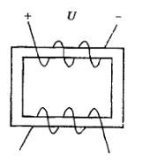图示电路中,磁性材料上绕有两个导电线圈,若上方线圈加的是100V的直流电压,则: