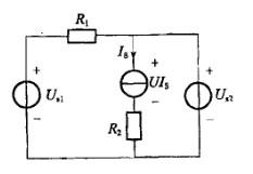 图示电路中,电压源US2单独作用时,电流源端电压分量U1S"为: