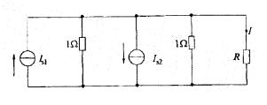 在图示的电路中,IS1=3A,IS2=6A。当电流源IS1单独作用时,流过R0=1Ω电阻的电流I=1 A,则流过电阻R的实际电流I值为: