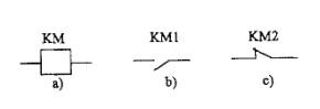 接触器的控制线圈如图a)所示,动合触点如图b)所示,动断触点如图c)所示,当有额定电压接入线圈后: