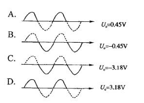 图示电路中,ui = 10sinωt,二极管D2因损坏而断开,这时输出电压的波形和输出电压的平均值为:![]()
